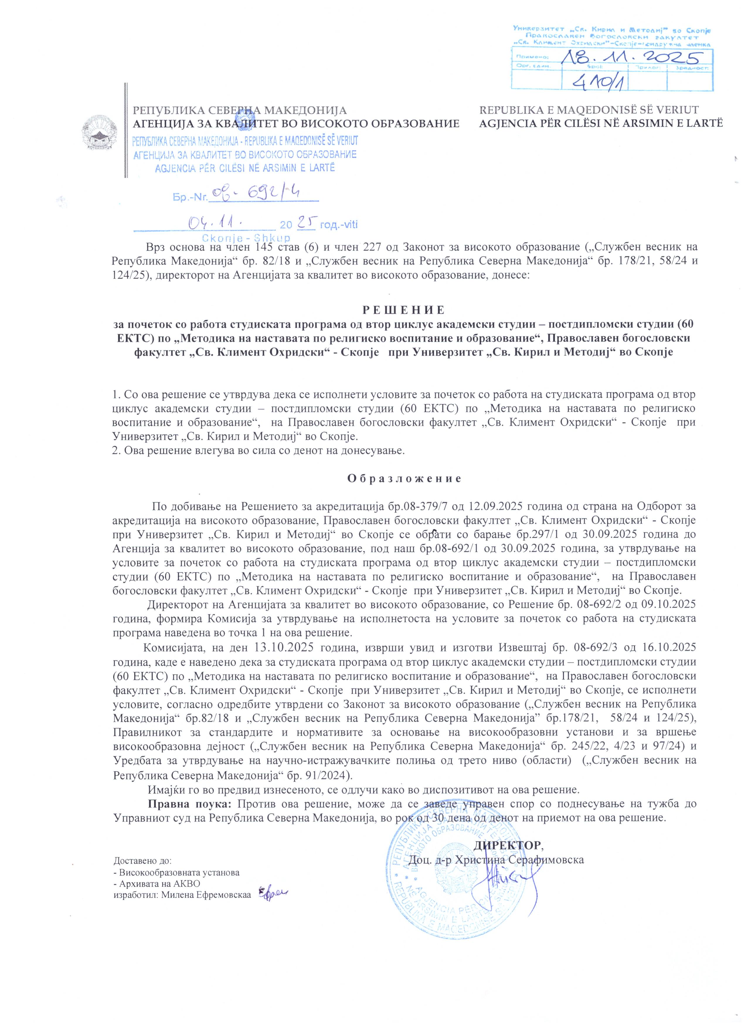 - Решение за акредитација